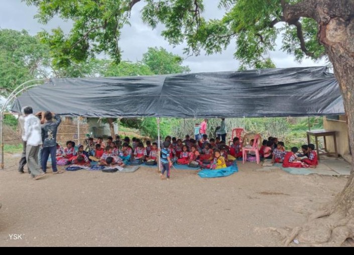 इयत्ता पहिली ते आठवी पर्यंत असलेल्या या शाळेत तात्पुरती एकच वर्गखोली उपलब्ध असल्यामुळे तसेच नवीन इमारतीचे बांधकाम होई पर्यंत विद्यार्थ्यांच्या शिक्षणात कोणताही अडथळा येऊ नये म्हणून श्री रामभाऊ पाटील सर व श्री योगेश कोळी सर यांनी पालक सभा घेऊन यातून मार्ग काढला.यासाठी जवळपास् तीन महिन्यासाठी स्वखर्चातून मंडप टाकण्यात आला आहे.या मंडपाच्या सावली मध्ये विद्यार्थ्यांना बसण्यात अत्यंत आनंद झाल्याचे त्यांच्या चेहऱ्यावरून दिसून आले.