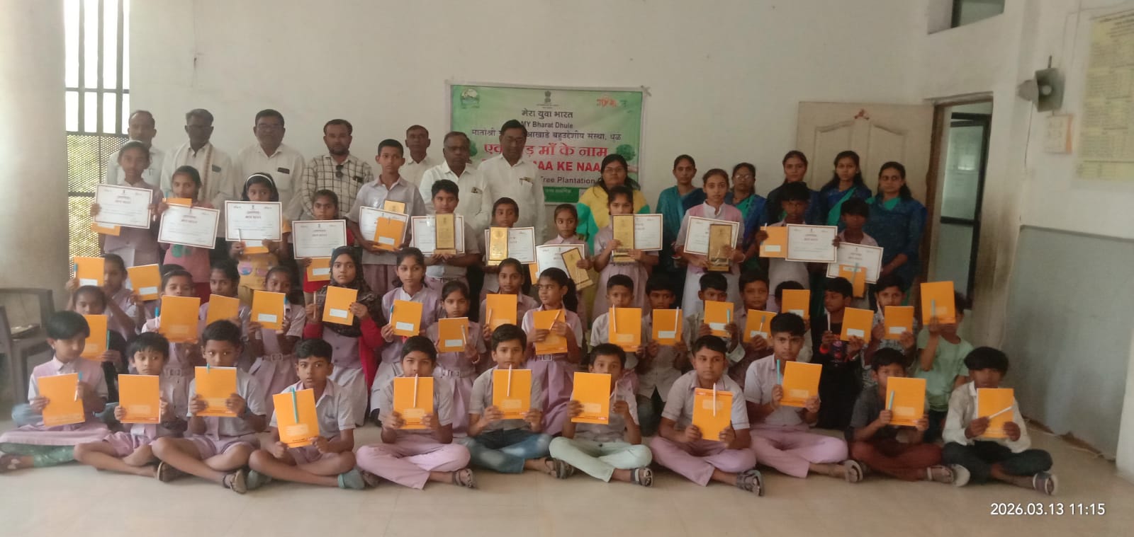 नरडाणा येथे चित्रकला स्पर्धेतील विजेत्यांचा गौरव; ‘एक पेड माँ के नाम’ उपक्रमांतर्गत वृक्षारोपण